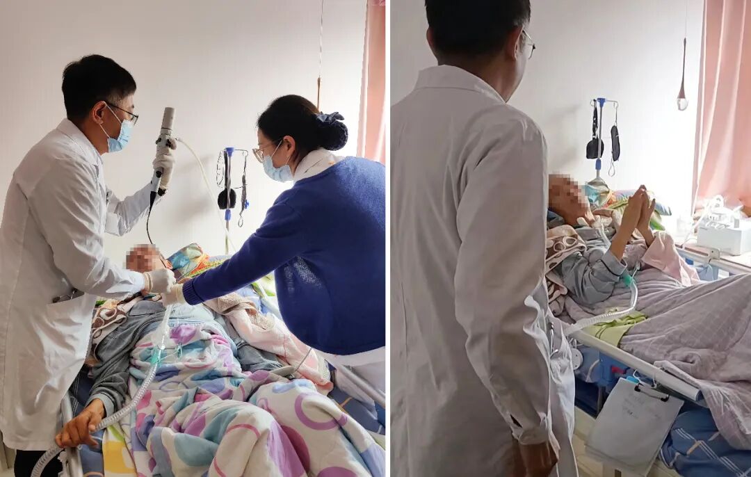 林科雄主任一行携带支气管镜来到患者家中,对患者进行镜下检查和肺泡灌洗,同时给患者进行针对性查体及康复指导。患者情况一切稳定,生命体征正常,对