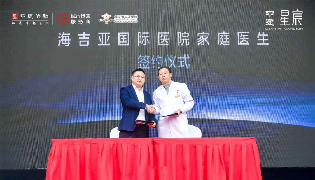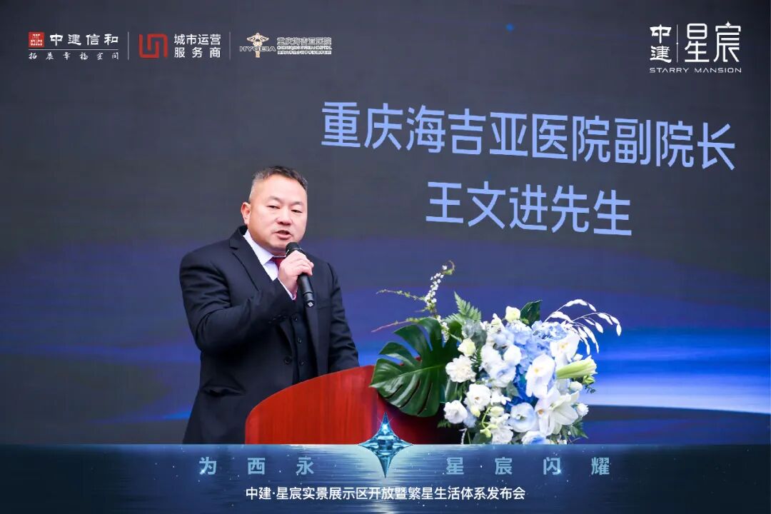 2023年12月19日,中建·星宸实景示范区开放暨繁星生活体系发布会盛大举行,重庆海吉亚医院作为医疗系统合作单位受邀出席。发布会上,我院王文进副院长为活动致辞,详细介绍了重庆海吉亚医院及家庭医生服务项目;孙景军主任医师作为家庭医生服务项目签约代表参加活动剪彩并签约。